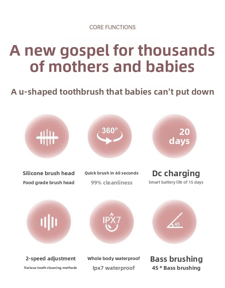 Soft Bristles: Gentle silicone bristles safe for children's gums and teeth enamel.